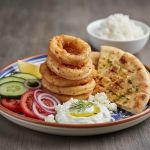 Grilled octopus marinated in lemon and olive oil, served with rice noodles and crispy fries.