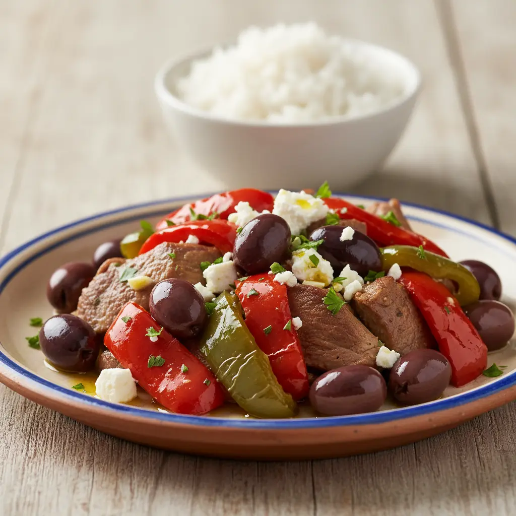 A vibrant mix of olives and peppers, perfect for a refreshing bite.