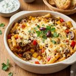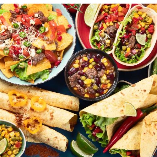 TACOS: Tortillas mit spezial scharfen mexikansichen Bohnen, Mais, Hackfleisch, Speck und Käse überbacken