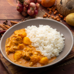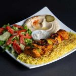 Schaschlik vom Schweinekamm, mariniert nach Art des Hauses, mit Kräuterbutter und Zwiebeln