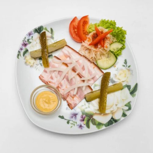 Kosakenteller/ Speckscheiben, sauren Gurken, Zwiebeln und Brot (+3.00 €)